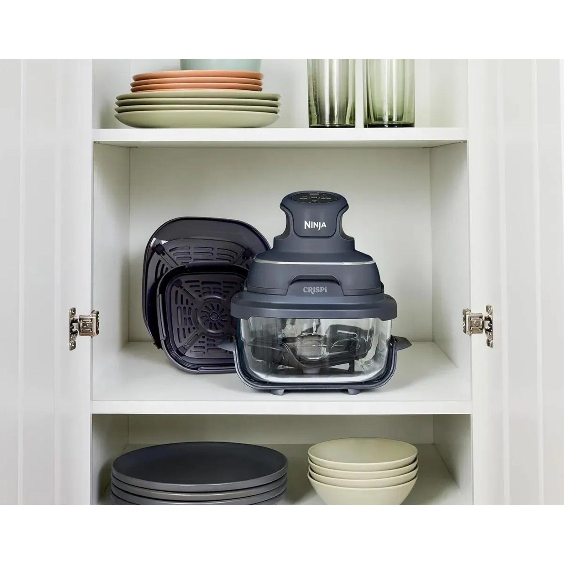 La freidora de aire Ninja Crispi 4‑en‑1 FN101GY combina el poder de una freidora de aire con la funcionalidad de un mini horno, todo en un diseño compacto, elegante y portátil. Con sus funciones de freír al aire, dorar, rostizar y recalentar, te permite preparar comidas crujientes por fuera y jugosas por dentro, en menos tiempo y con menos aceite.